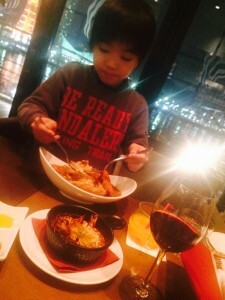 息子と、夜景と、赤ワイン。。。。