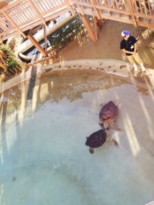 なぜか。ウミガメで大興奮のサチとなつみちゃん。