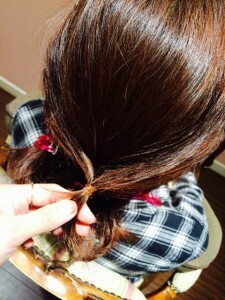 分けた後ろの毛はただおろした状態で大丈夫です。