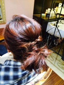 サイドのくくった毛を少し引っ張り出してルーズに。。。