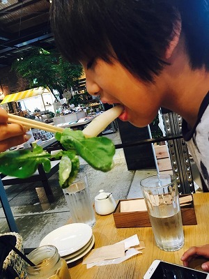 なつみちゃん居ると野菜食べる輝星 笑