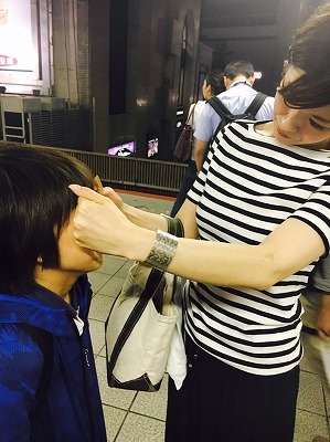 ホームで遊ぶ2人