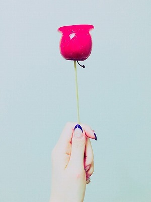 涼しい部屋でりんごあめ。