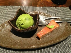 抹茶のアイスとバナナのケーキ