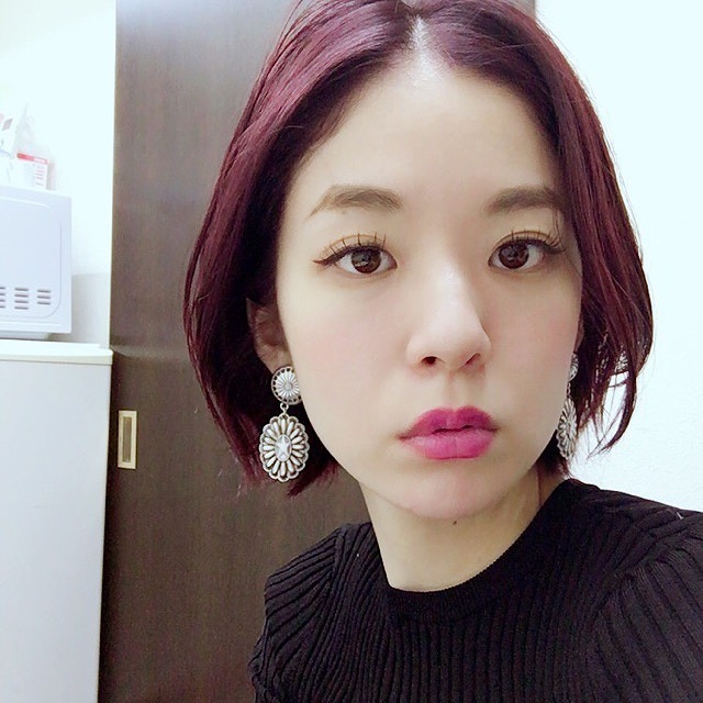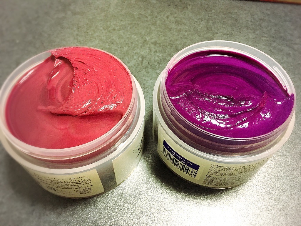 オレンジになった髪を紫に戻します。