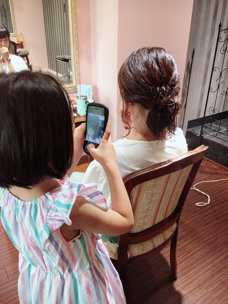 出来あがりを撮る娘