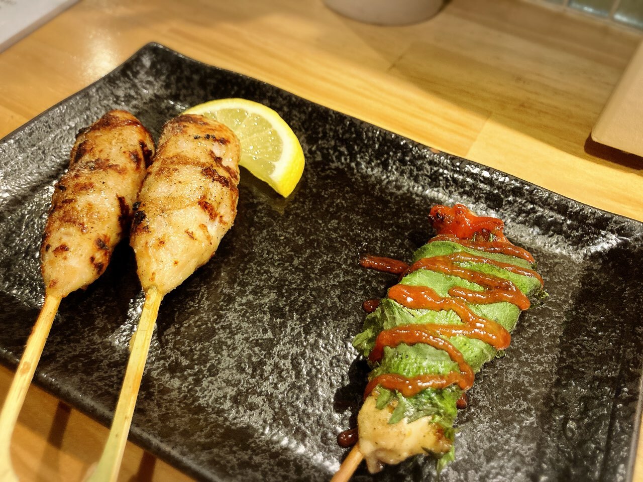 休日に、家の近くの焼き鳥屋さんでお食事 (^^♪