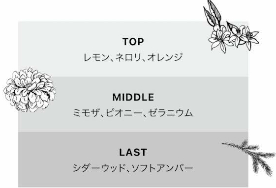 厳選された60種類の香り成分が織り成す奥深く透明感のある香調。