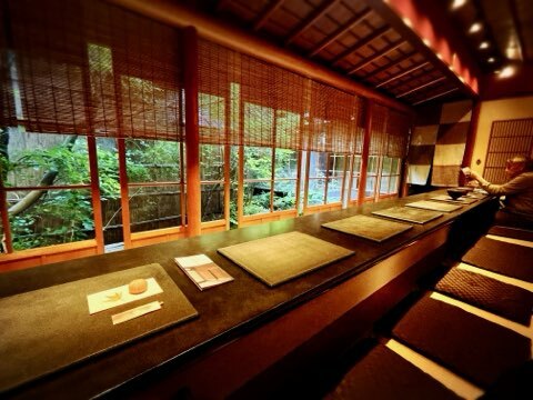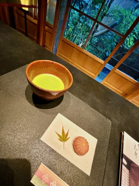 お茶屋の奥で和菓子とお抹茶