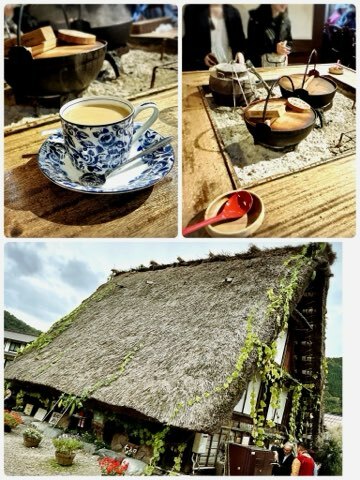 合掌造りのカフェでお茶
